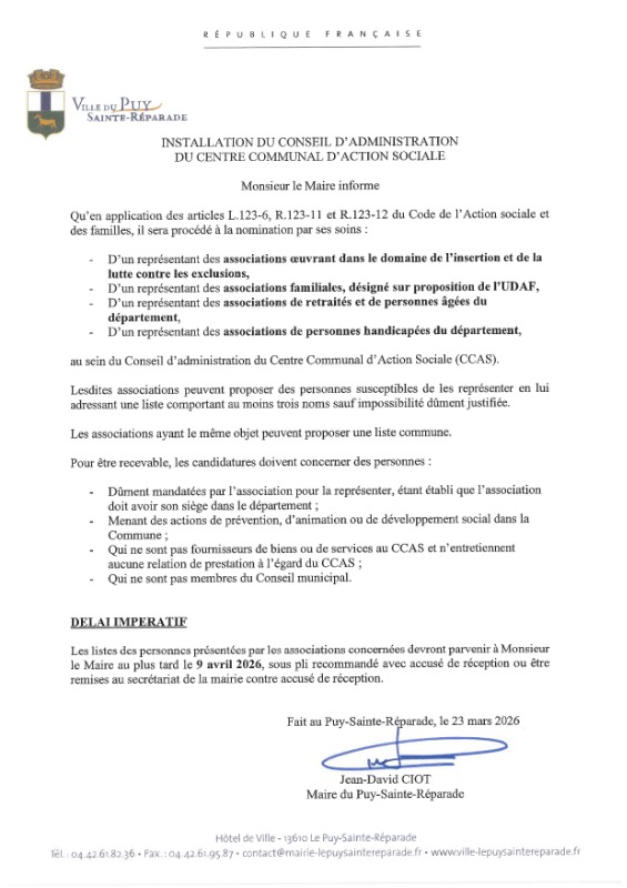 La commune lance un appel à candidatures à destination des associations pour siéger au conseil d’administration du CCAS (Centre Communal d'Action Sociale)