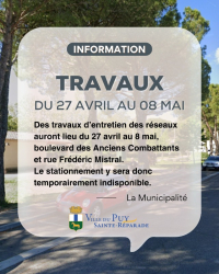 Si vous désirez réserver ou en savoir plus, prenez contact directement auprès de la Maison du Tourisme, par mail : catherine.lorente@mairie-lepuysaintereparade.fr ou com@mairie-lepuysaintereparade.fr ou par téléphone : 04.42.61.93.78 / 06.69.12.91.72.