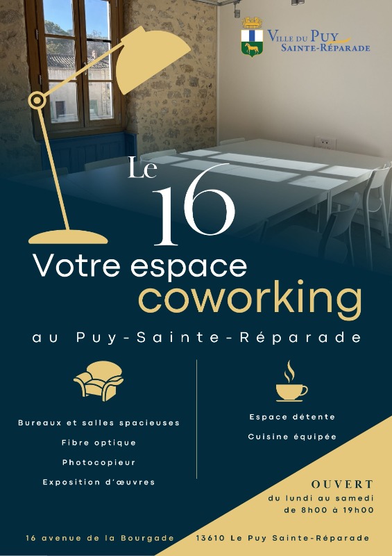 Le 16 est votre espace de coworking situé au premier étage de la Maison du Tourisme, conçu pour offrir un cadre de travail favorisant la créativité et la collaboration.